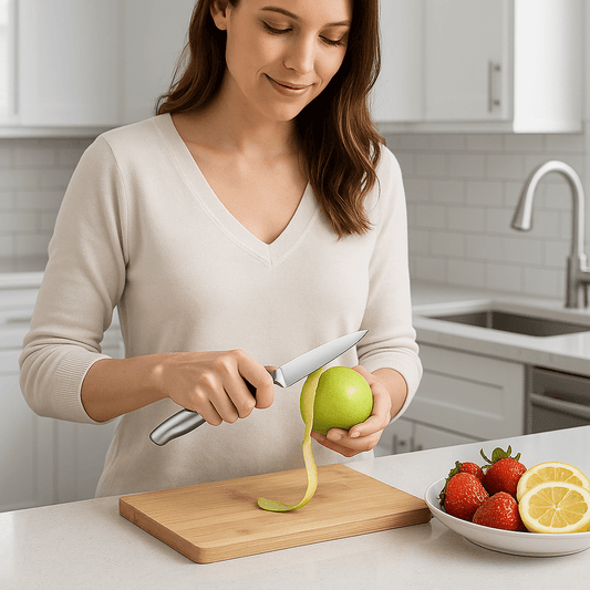 Pour la préparation des fruits et légumes, notre couteau économe offre une solution pratique pour éplucher rapidement. Sa lame pivotante s'adapte aux contours des aliments, permettant de retirer les peaux fines sans sacrifier la chair précieuse en dessous.